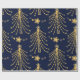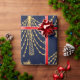 Papel De Presente Padrão de Estrela de Árvore de Natal Dourada Azul