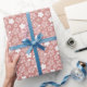 Abstrato moderno inverno, estrela branca e rosa de ouro e padrão elegante de flocos de neve. Decorem seus presentes de Natal com este rosa de ouro festivo e papel de embrulho branco.