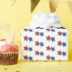 Este padrão patriótico vermelho e azul de estrelas é apresentado em um fundo branco. Mande-o em mão, pronto para ser usado para aniversários, parabéns ou outros embrulhos de presentes de celebração.