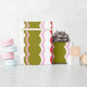 Envolva seus presentes com um padrão divertido e moderno de colunas de listras com escala. Este padrão é uma mistura de vermelhos, pinks, e virilhas verdes e se sente fresco e festivo em um fundo branco nítido e traz uma sensação de capricho gráfico para a pilha de presentes.