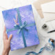 Um padrão de pinheiro azul e branco em todas as festas no papel azul claro.