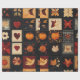 Este papel de embrulho apresenta um padrão de colcha de arte folclórica texturizado com denim, combinando o outono com o charme estilo country. A manta de retalhos é composta de blocos quadrados costurados, cada um exibindo um motivo distinto como abóboras, folhas de outono (carvalho e carvalho), pássaros, girassóis, corações e estrelas, tudo em estilo de Americana primitiva rústica. A paleta quente de laranjas, vermelhos e castanhos contrasta lindamente com fundo azul escuro e preto, acrescentando profundidade e um sentimento confortável e feito à mão. Perfeito para decoração de fazendas, artesanatos de outono, projetos de Ação de Graças, têxteis rústicos e designs DIY inspirados no país.