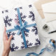 Papel De Presente Padrão de Floco de Neve Azul Marinho de Feriado