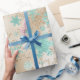 Papel De Presente Padrão de Floco de Neve de Natal Dourado e Mint