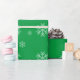 Este belo e simples invólucro de presentes apresenta um padrão de flocos de neve sobre um fundo verde festivo (que você pode personalizar para qualquer cor que quiser!). Você também pode fazer outras mudanças: remover alguns flocos de neve ou alterar seu tamanho ou posicionamento. Adicione seu próprio texto ou imagens também, se quiser.
