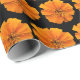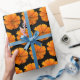 Papel De Presente Padrão de Flor Laranja e Preto Marigold