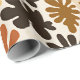 Um padrão contínuo com formas abstratas e orgânicas de coral e folhas em tamanhos variados. O design usa uma paleta quente e outonal de terracota, marrom chocolate profundo, laranja queimado e creme. As silhuetas têm uma textura suave de papel recortado à mão que dá ao padrão um sentimento moderno de meados do século.