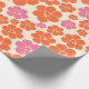 Papel De Presente Padrão de Flor - Rosa, Laranja e Creme