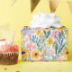 Este design apresenta flores de verão, aquarelas, bonitinhas, em amarelo, rosa e azul sobre fundo branco.