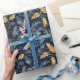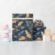 Papel De Presente Padrão De Folhas Azuis E Douradas