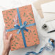 Papel de presente com padrão moderno de folhas da floresta em taupe sobre fundo salmão
