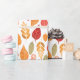 Um padrão repetitivo de folhas de outono em tons de laranja, coral e verde empoeirado. As folhas têm formas e tamanhos diferentes. O fundo branco pode ser alterado para qualquer cor que você quiser usando a ferramenta personalizar!