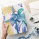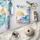 Folha da selva de aquarelas que embrulha papel em relevo de verde, azul e ouro.