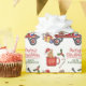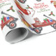 Três gatinhos adoráveis estão incluídos no padrão de diversão neste papel de embrulho de Férias. Um gatinho veste um chapéu de Papai Noel e se senta em um copo vermelho; um se senta ao lado de pacotes de presentes envoltos de forma brilhante, e o menor gatinho veste um arco vermelho e caminha em um vagão. O texto vermelho diz "Feliz Natal". Sua assinatura personalizada está em verde em dois campos. As imagens e o texto são colocados sobre um fundo branco. Crianças de todas as idades vão adorar este jornal!