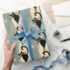 Padrão colorido de Meio século com gato preto, estrelas pretas e coloridas (bege, verde, turquesa) hombus decorativo para todos que gostam de gatos e design no estilo Meio século.