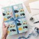 Um padrão adorável de gatos-do-mar apresenta um smoking ou um gato bicolor, uma cinza tabby, uma tábua laranja, um gato branco, um gato preto e um gato de rag boneca num fundo verde-menta. Perfeito para as (loucas) pessoas de gatos em sua vida.