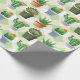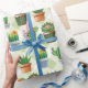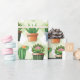 Planta de suculência em fundo verde de gingham, Aloe vera, Cacto de pera picante, Ouro de Barrel e Aeónio.