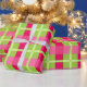 Papel De Presente Padrão de Gingham Rosa e Verde