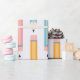 Um padrão perfeito e moderno, com lápis brilhantes e de cor arrojada em tons de rosa, azul e laranja dispostos em um design vertical limpo e repetitivo. A luz de fundo contrasta perfeitamente com os lápis vibrantes, dando ao padrão uma sensação divertida e criativa, ideal para inspirar a criatividade e adicionar um pop de cor.