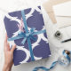 Papel de embrulho de prenda de prato de quatrefoil marroquino azul-indigo e branco