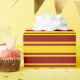 Este design de papel de embalagem apresenta um padrão de listras vermelho-escura e amarelo. Pode ser divertido usar papel de embrulho como este ao preparar presentes para comemorar um aniversário, um casamento, um aniversário ou qualquer outro evento.