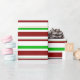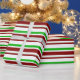 Este design de Natal e feriados apresenta um padrão verde, branco e vermelho de listras. Pode ser divertido usar papel de embrulho como este quando se preparam presentes para comemorar um aniversário, um casamento, um aniversário ou qualquer outro evento.