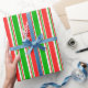 Papel De Presente Padrão de Linhas Vermelhas, Brancas, Verdes, Pensa