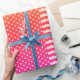 Papel De Presente Padrão de Listras e Estrelas Laranja Branco Rosa