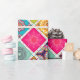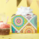 Um padrão impressão étnico colorido de mandalas da cultura indiana ou marroquina / do Oriente Médio. Este design vibrante tem azul-rosa, amarelo e uma gama completa de designs coloridos e intrincados de mandala.