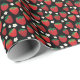 Um doce padrão repetido de morangos suculentos e as flores brancas da planta estão espalhadas por um fundo preto rico. Este presente é uma adição divertida à sua coleção de presentes para presentes de aniversário e chá, bem como para festas e festas de verão.