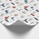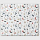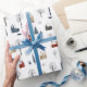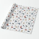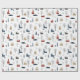 Papel De Presente Padrão de Natal de Casas, Árvores e Lago ou Lagoa