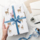 Papel De Presente Padrão de Natal de Veados Amarelos em Branco