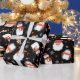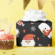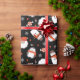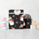 Um pinguim bonito com um cachecol vermelho, um rosto de papai noel, um boneco de neve, doces de hortelã de natal e flocos de neve em um fundo preto decoram este papel de embrulho de Natal. Um padrão brilhante e divertido para os presentes de Natal. Disponível em outras cores. Projetado para você pelo Blackberry Boulevard.