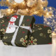 Um charmoso padrão de férias com bonitos bonitos bonecos de neve em Santa Chapéu, ouros de neve, arcos vermelhos e realces verdes em um fundo verde escuro. Esta design festiva irradia alegria de Natal e é perfeita para embrulhar papel, decoração de férias ou artesanatos sazonais. Os detalhes intrincados e a paleta de cores quentes evocam um espírito de Natal confortável, fazer-o ideal para espalhar alegria durante a época de Natal.