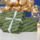 Este papel de embrulho apresenta o texto preto da frase "feliz natal" sobre um fundo verde. O texto pode ser personalizado.