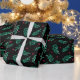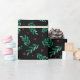 Papel de embalagem festivo na moda preto impresso com um padrão clássico simples de folhas verdes a aquarelas e de bagas vermelhas. Perfeito para belos presentes de Natal. Boa escolha para um inverno tradicional, floresta e entusiasta do estilo rústico.