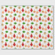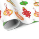Papel de enrolamento num padrão antigo de enfeites de árvores de Natal, em vermelho profundo, verde escuro, ouro macio e rosa, contra fundo branco