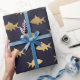 Papel De Presente Padrão de Peixe Náutico Preto e Dourado