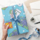Várias mãos desenharam presentes de Natal em fundo azul. Design de Natal perfeito.