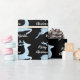 Padrão de Natal azul para bebês elegante e moderno. Personalize-o com sua mensagem e seu nome.