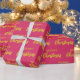 Papel De Presente Padrão de Script de Natal Dourado e Rosa Quente