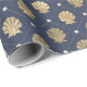 Papel De Presente Padrão de Shell Náutica Azul e Dourado