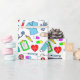 Um padrão bonito de suprimentos médicos que qualquer médico, enfermeiro, estudante de medicina ou profissional de saúde certamente vai gostar! Este padrão divertido inclui esfregões médicos, um estetoscópio, medicação, luvas de exame, saco médico e outros suprimentos. São desenhados à mão num estilo de desenho animado com cores brilhantes. A cor branca do fundo pode ser alterada para outra seleção de sua escolha. Parece melhor em cores pastéis. Este papel de embrulho super fofo é uma forma única de embrulhar um presente para qualquer trabalhador de saúde!