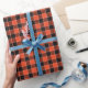 Papel De Presente Padrão de Tartan de Xadrez Negra Laranja Casual