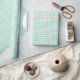 Este design moderno de papel de embrulho apresenta um padrão de trama cruzada desenhado à mão em branco sobre um fundo divertido azul água... Uma escolha maravilhosa para muitas ocasiões!
