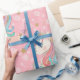 Papel De Presente Padrão de Unicórnio Rosa