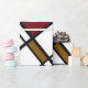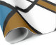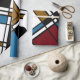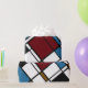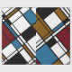 Padrão geométrico moderno em combinação de cor vermelho escuro, preto, branco, azul e marrom mostarda.
