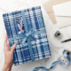 Papel De Presente Padrão do Painel Azul e Xadrez Branca