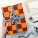 Papel De Presente Padrão do quadro de verificação vermelho + laranja