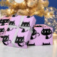 Um papel de enrolamento cor-de-rosa na moda, com um padrão ilustrativo de um gato tímido e fofo. Disponível em todas as opções. Visite nossa loja para ver mais papéis de empacotamento de tendências e outros artigos.